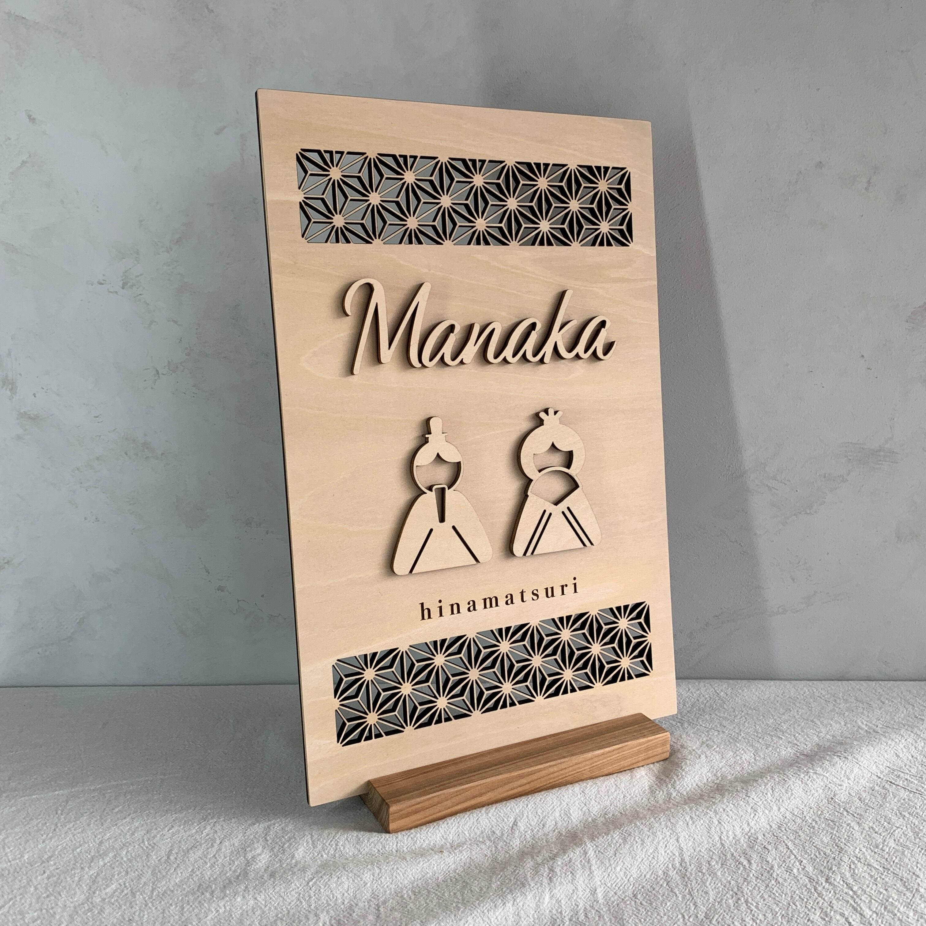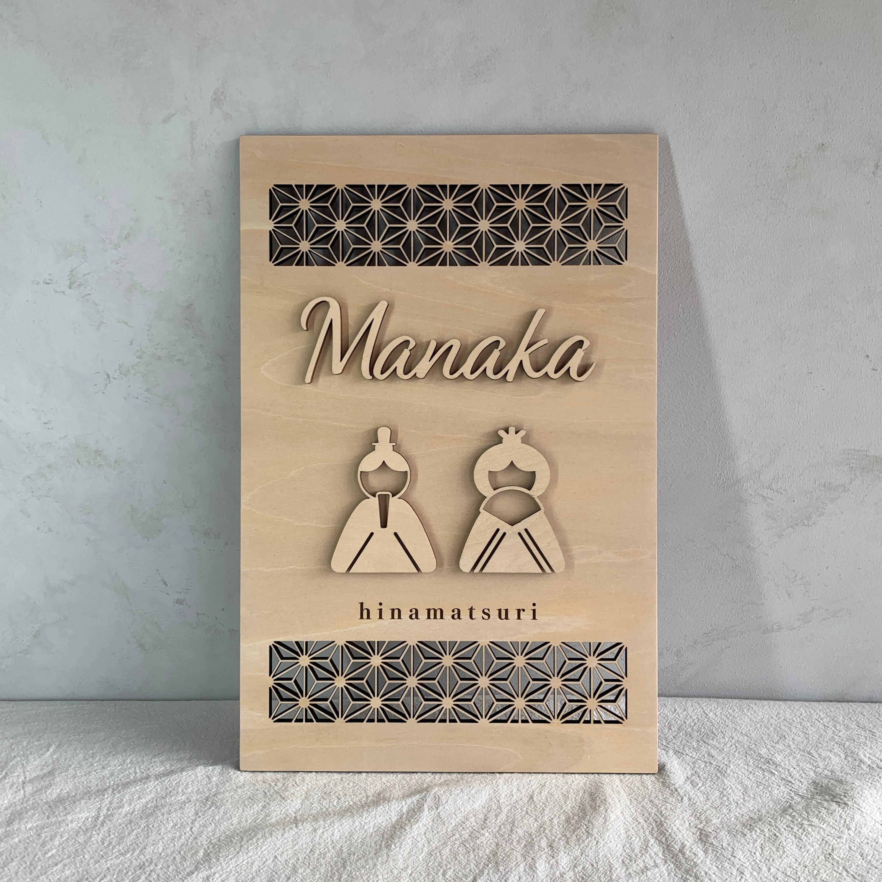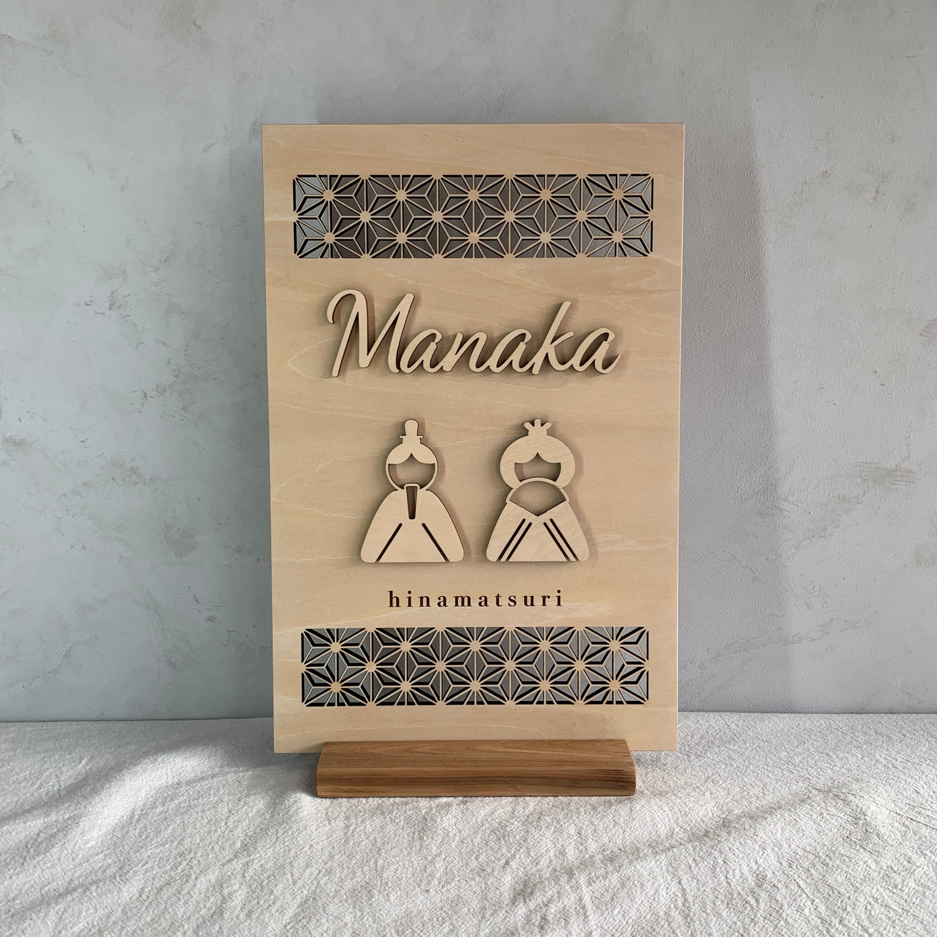 お子さまの大切な初節句を、やさしい木のぬくもりで彩る名入れオーダーの木製お雛様パネルです。