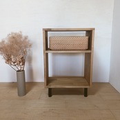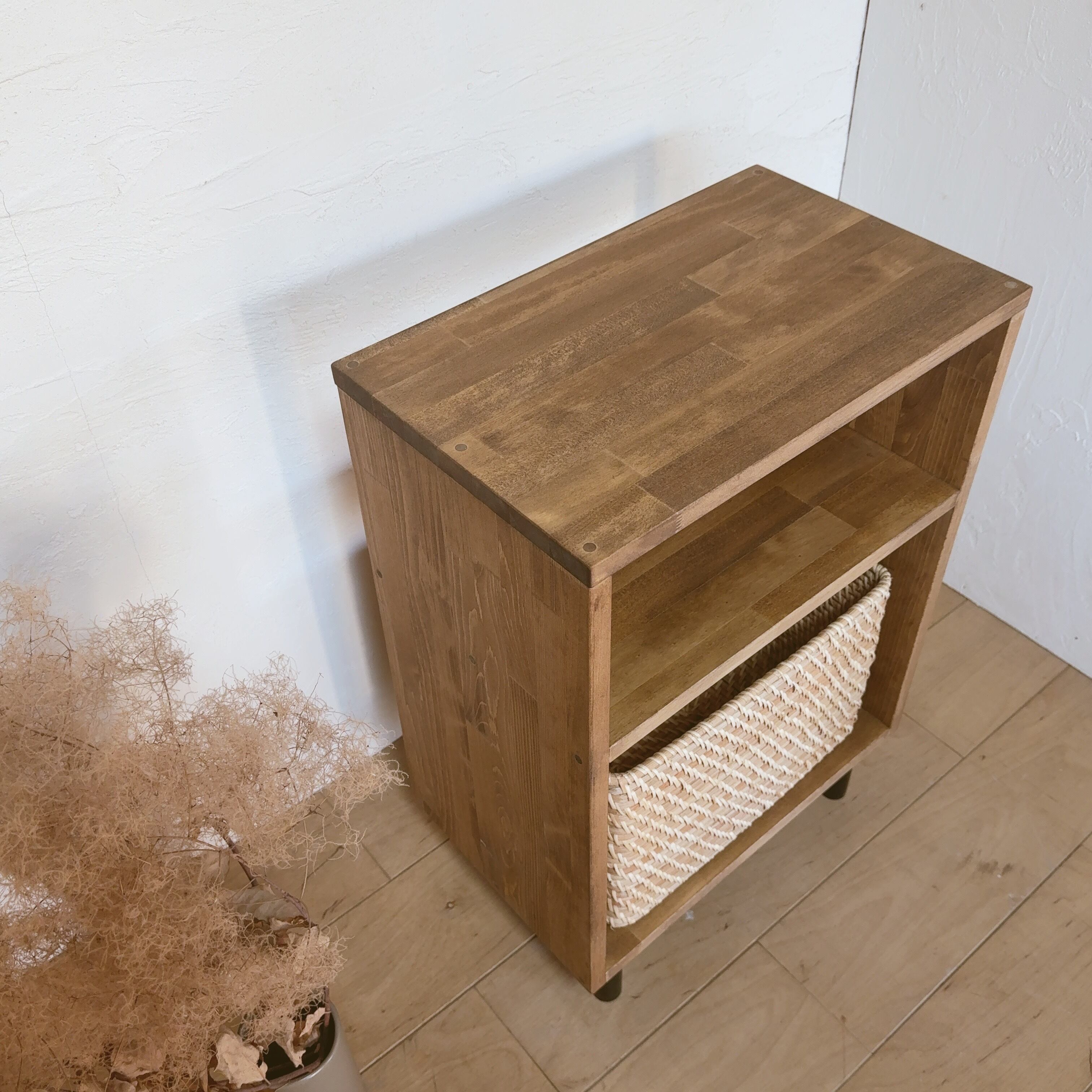 サイドテーブル 木製サイドテーブル A4収納 テーブル ラック シェルフ 収納棚 玄関家具 リビング家具 ベッドサイド ナイトテーブル コンパクト家具 スリム家具 北欧インテリア ナチュラルインテリア ラタン ラタンバスケット かご収納 かごインテリア おしゃれ家具 ディスプレイ棚 ディスプレイラック 撮影小物 サロン家具 待合スペース 店舗什器 木製家具 ハンドメイド家具 インテリア雑貨 収納アイテム 新生活 新生活準備 省スペース家具 スチール脚