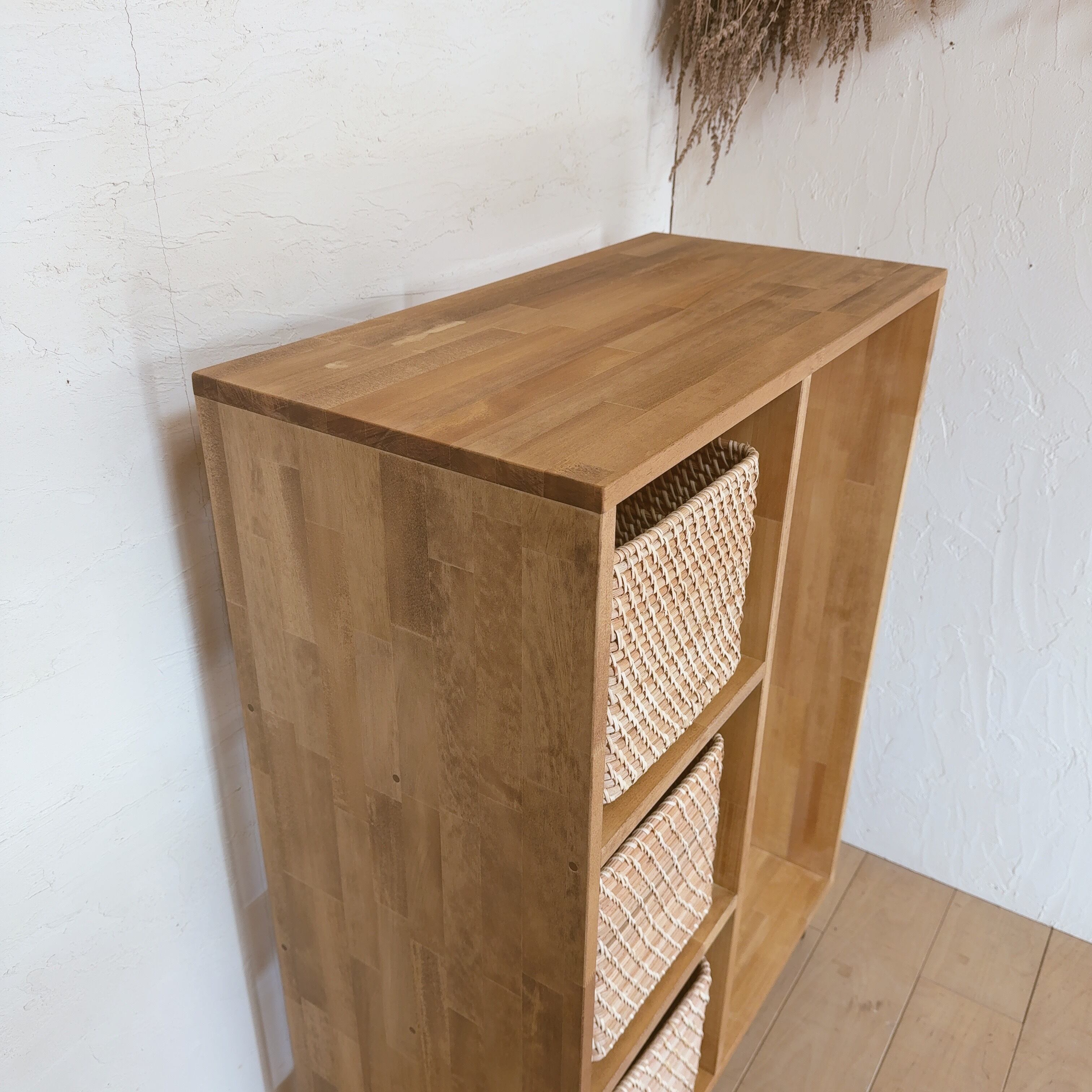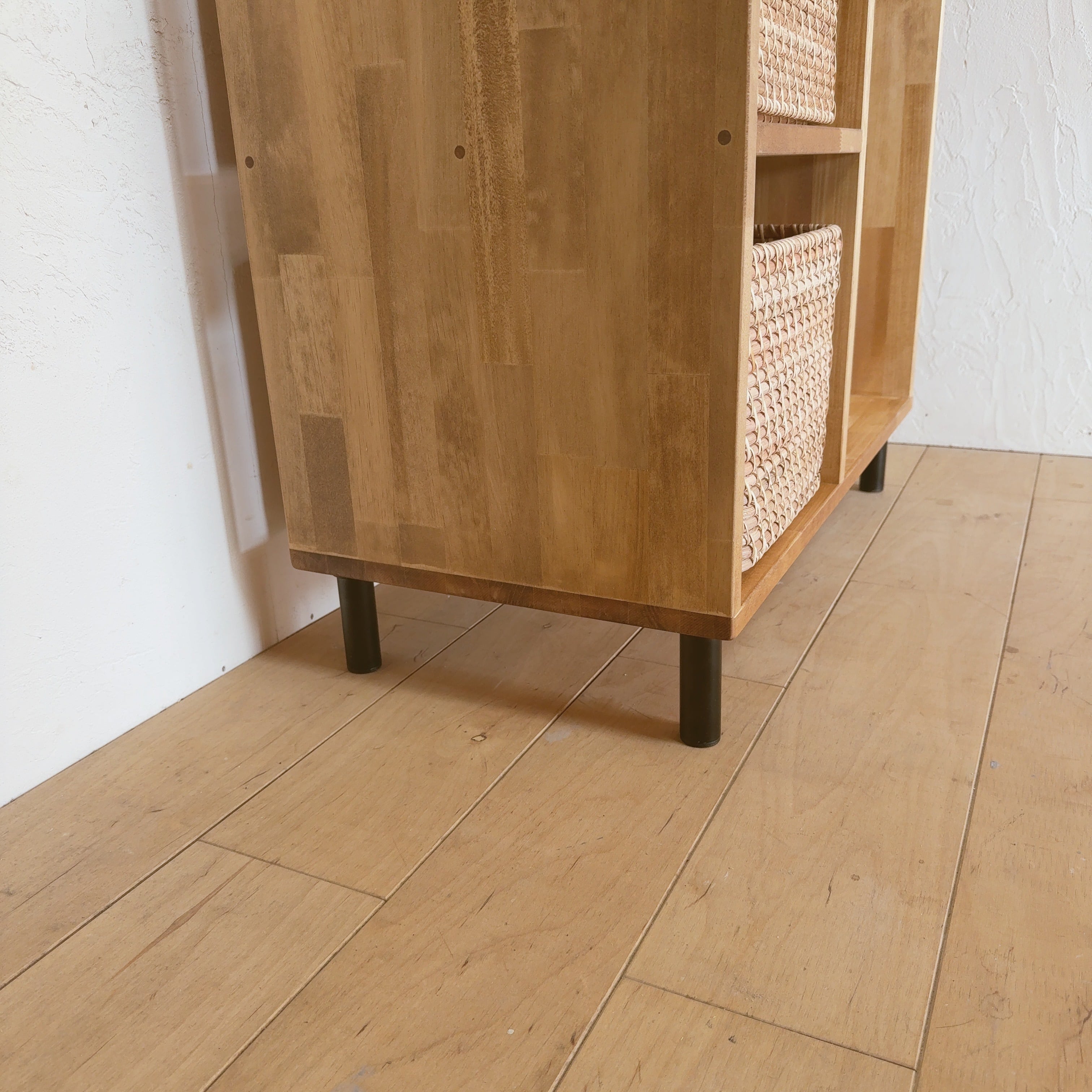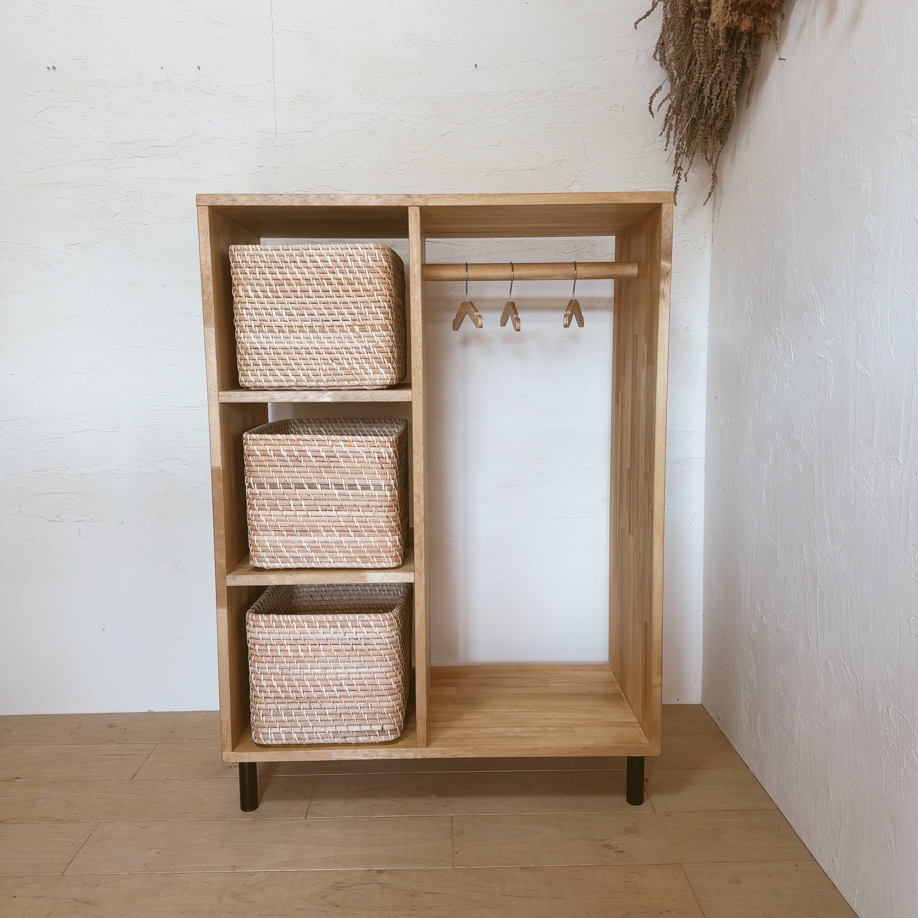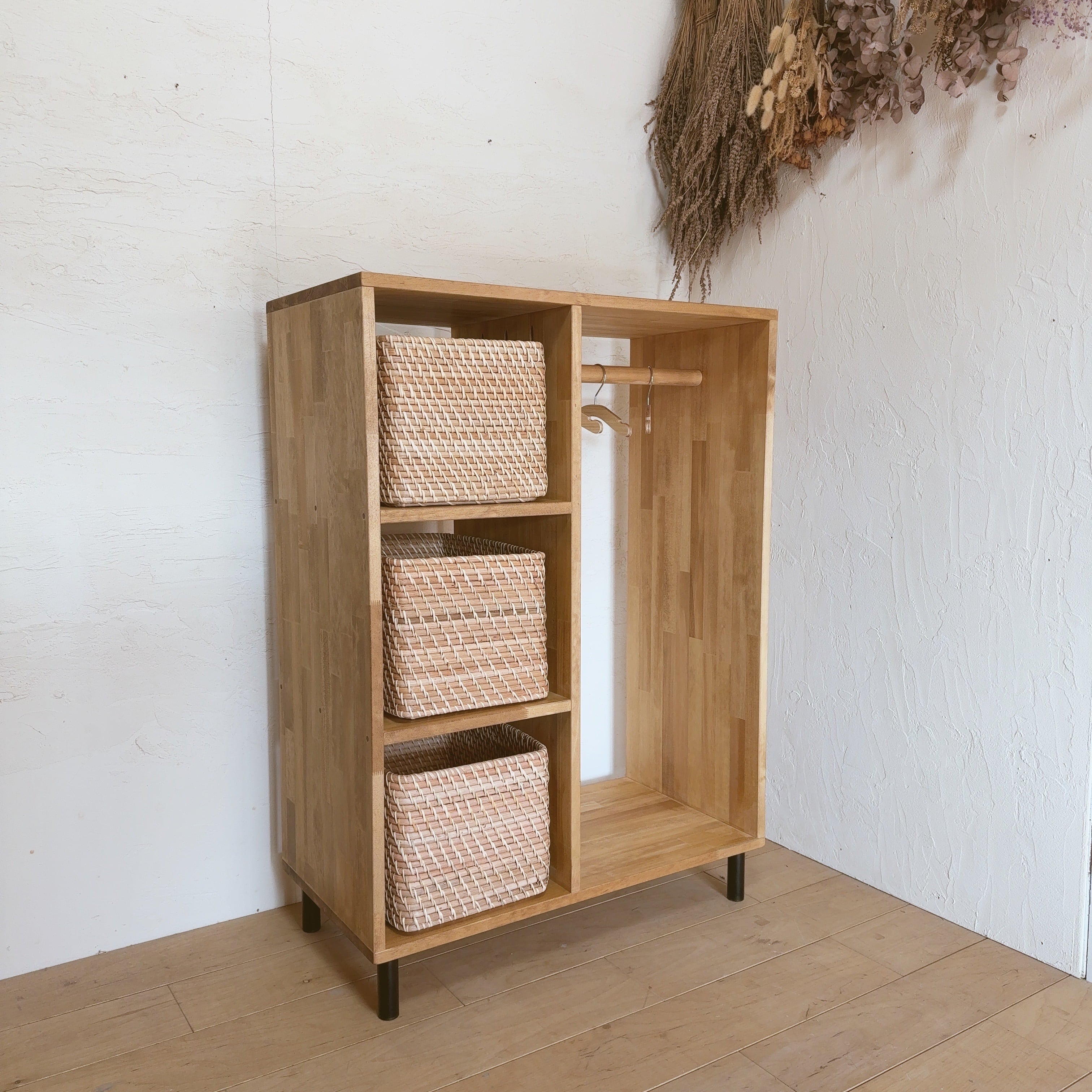 左側は棚収納になっており、ランドセルや教科書、習い事のバッグなどを収納できます。バスケットを入れれば、小物や文房具の整理にも便利です。