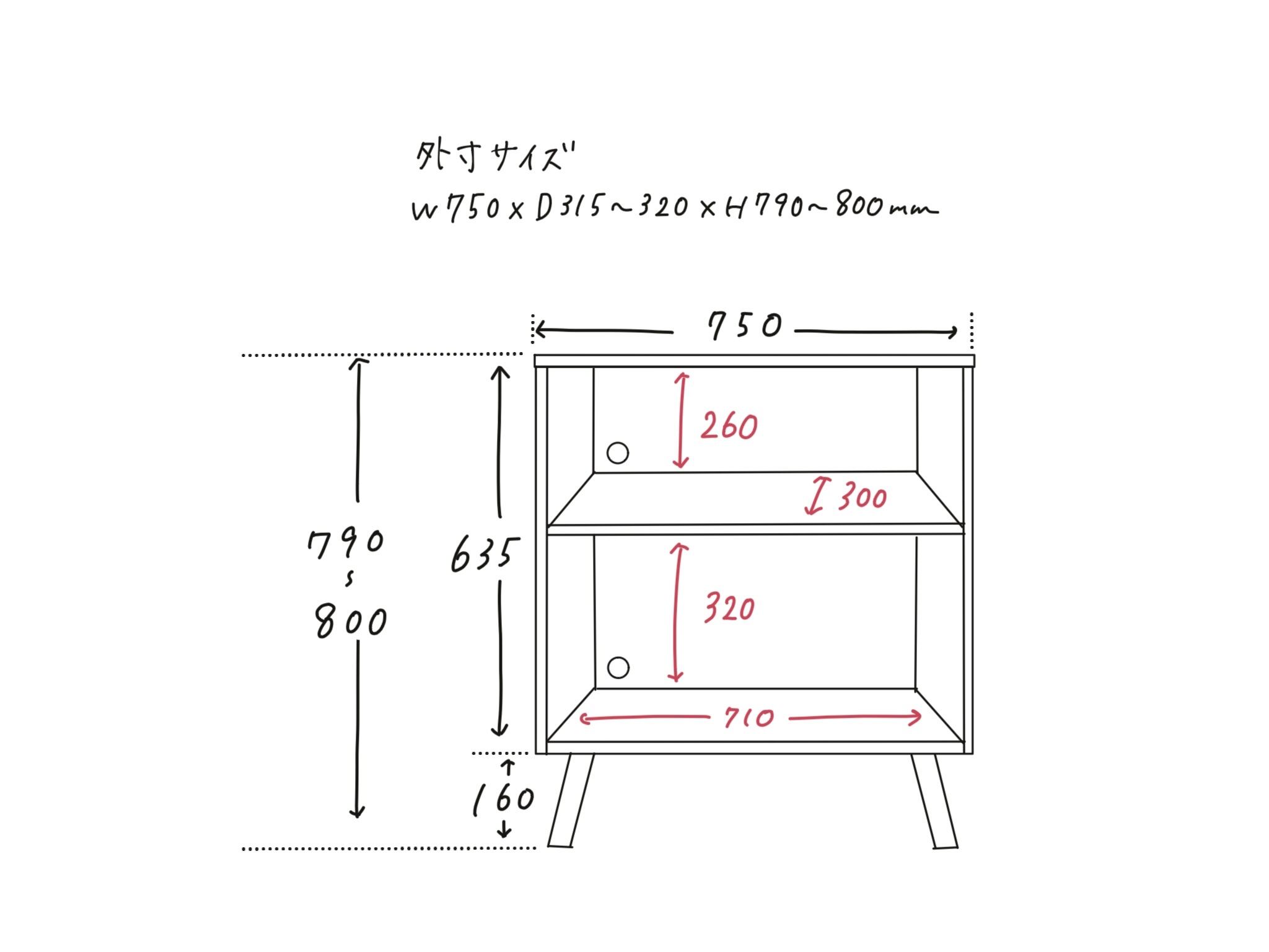 幅750 / 奥行315〜320 / 高さ790〜800mm