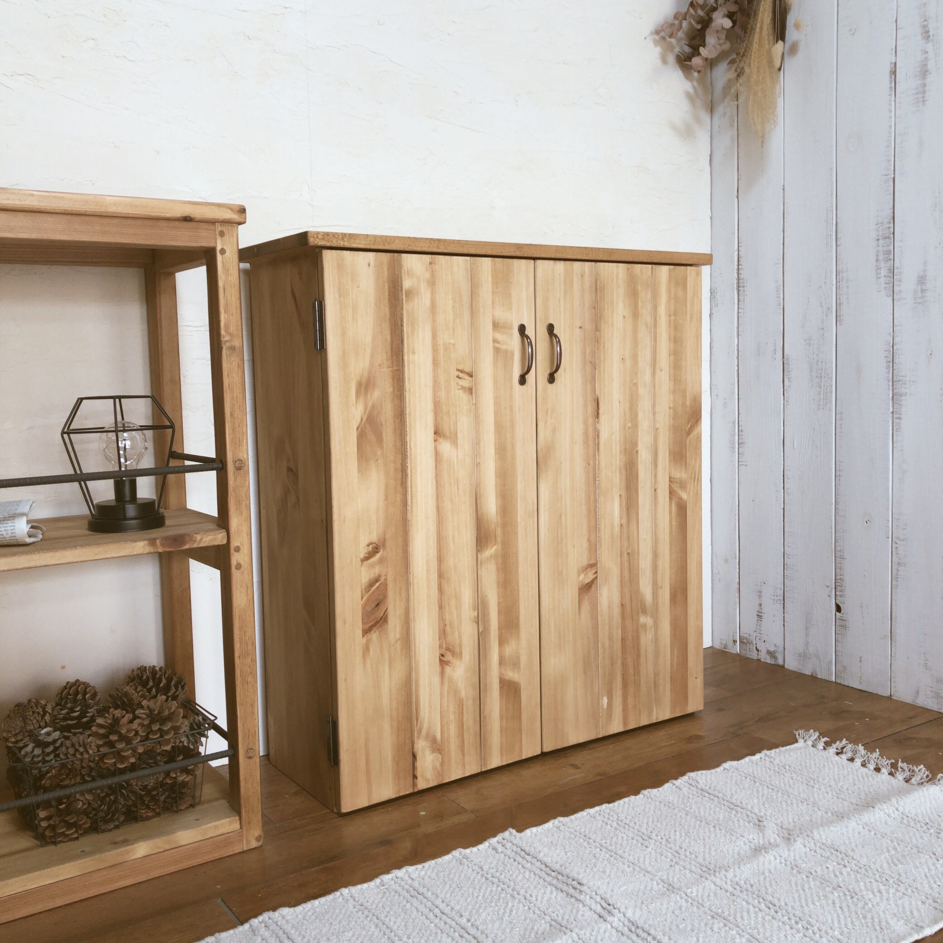 キャビネット 観音扉 2段 ナチュラル 北欧 シンプル モダン サーフスタイル カントリー 収納 リビング 玄関
